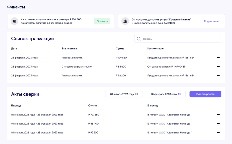 Акты сверки за любые периоды. Вы можете выгружать отчеты в любое время