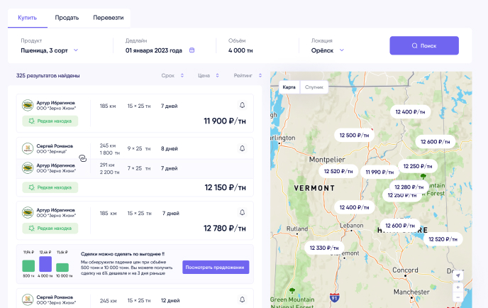 Покупайте, продавайте, перевозите зерно по всей России всего за 1 клик с помощью нашей торговой площадки